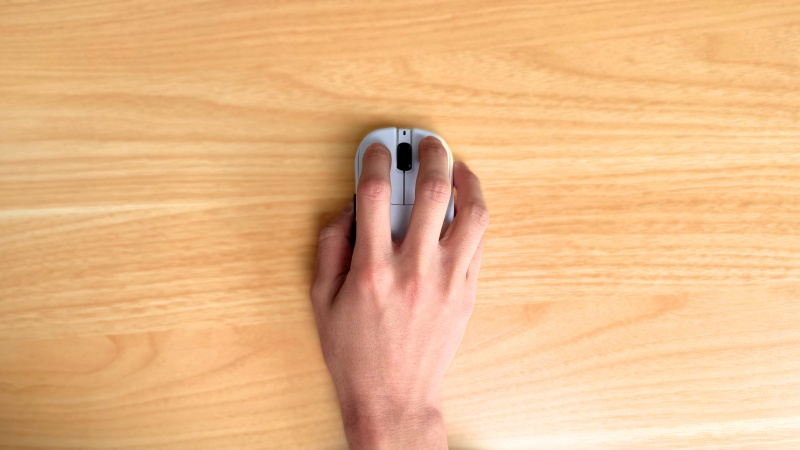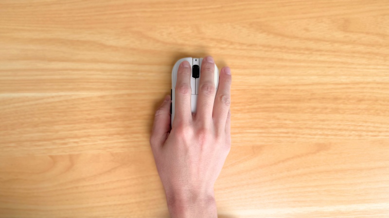 マウスを握ったときに、薬指と小指を乗せリラックスさせつつ、指先での操作性も残っていると感じました。
