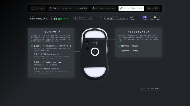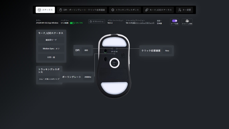 NP-01S Ergoは底面のボタンを操作するか、ウェブドライバーで設定を変更可能。