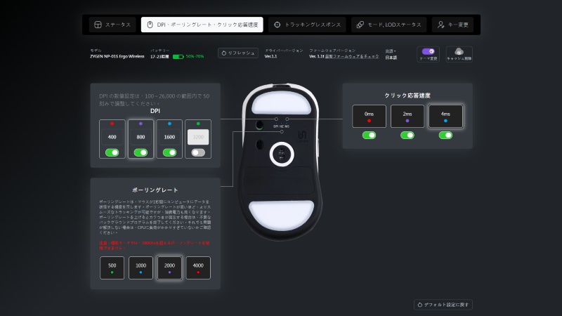 クリック応答速度0ms/2ms/4ms