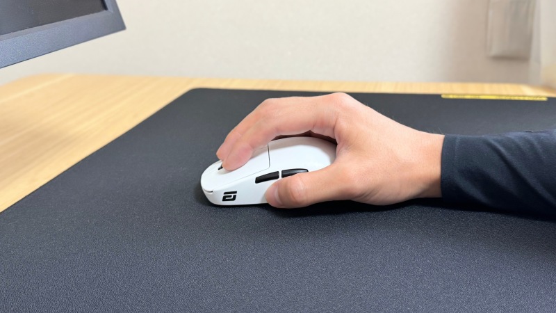 また、マウスを動かしている時に、強い沈み込みは感じませんが、止めをアシストしている感触は伝わります。
