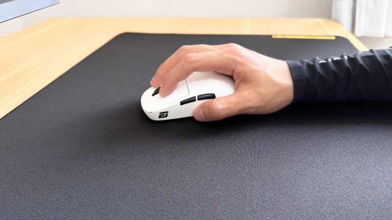 Artisanなどの全くずれない滑り止めに比べると、ややグリップ力は落ちます。ただ、振り向き37cmの僕がマウスを振り回しても、ズレが気になることはほとんどありませんでした。